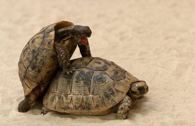 - Пожилых черепах также не стоит вынуждать к спариванию, так как их потомство может иметь массу генетических дефектов, также присутствует высокий риск акушерских осложнений во время кладки.